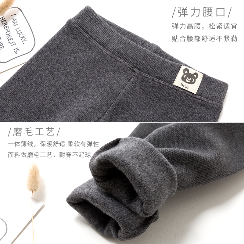 子 加绒加厚裤 女童薄绒打底裤 春秋外穿女宝宝抓绒纯棉儿童秋冬款