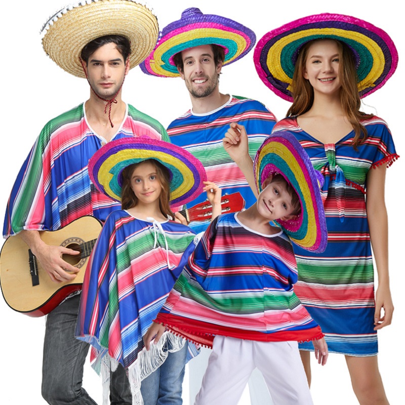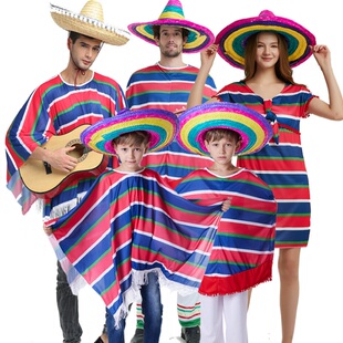 万圣节墨西哥民族风情cosplay服装 披风草帽儿童成人男女表演衣服