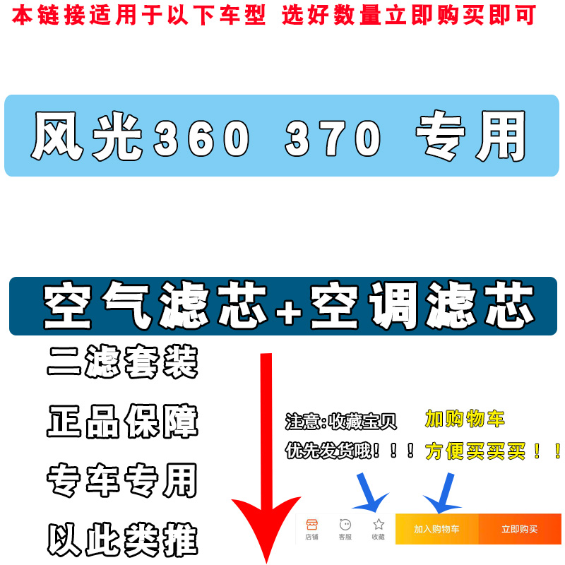 适配小康风光360 1.5空气格机油滤清器原厂升级 370空调滤芯1.3T