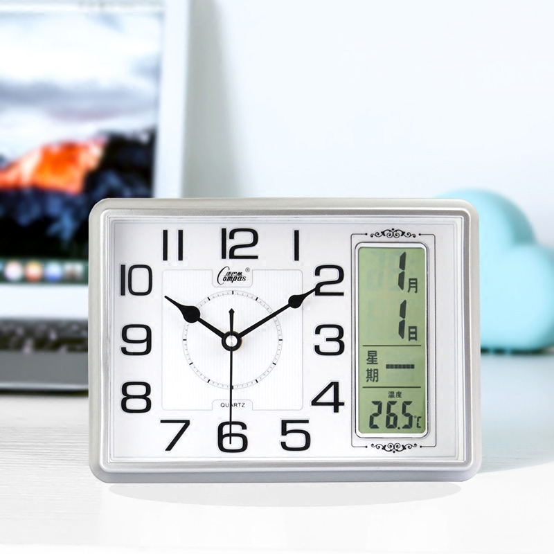 康巴丝万年历座钟客厅卧室静音日历台式 电子表钟表带温度桌面时钟
