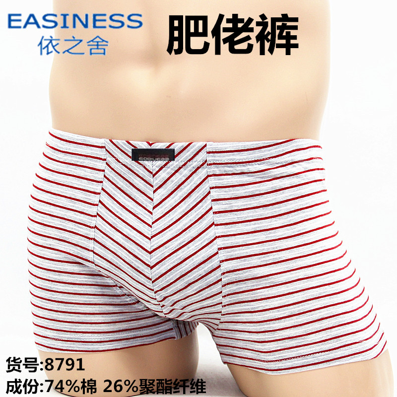 肥佬加大型透气平脚四角裤 中腰条纹青年胖哥平角裤 男士 依之舍内裤