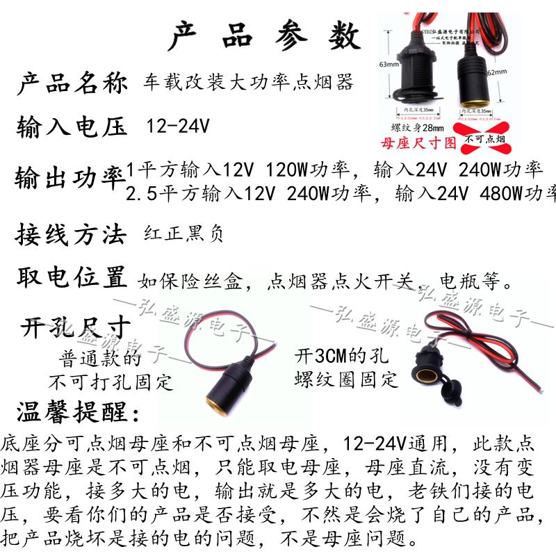 汽车载点烟器母座12v24v大功率360瓦铜线防水改装 取电插座车充座