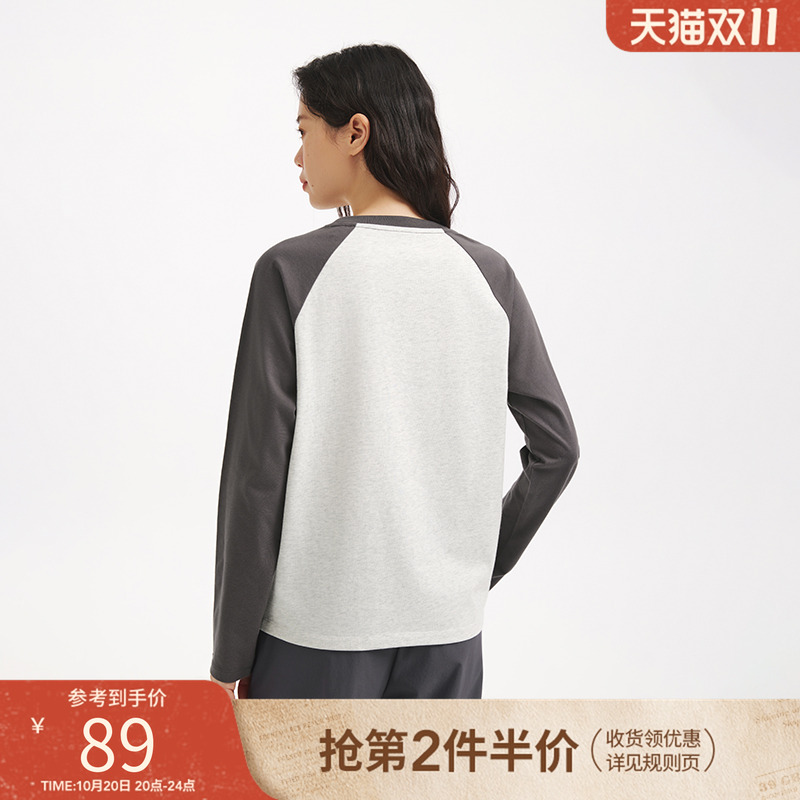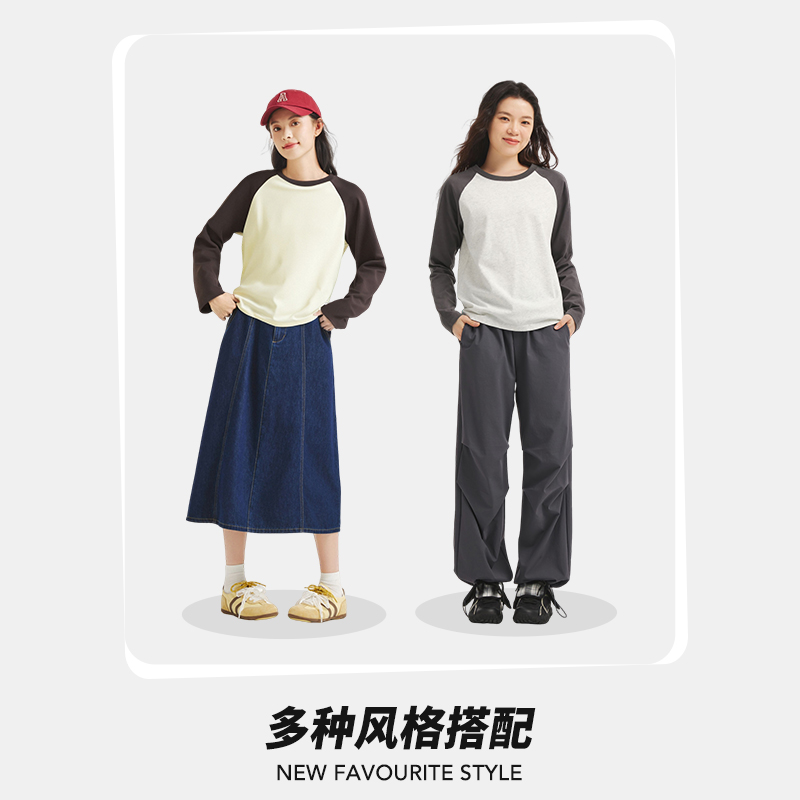 宽松上衣打底衫 热风女士长袖 基本插肩长袖 新款 T恤上衣2025年秋季