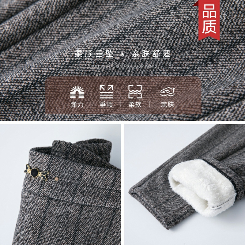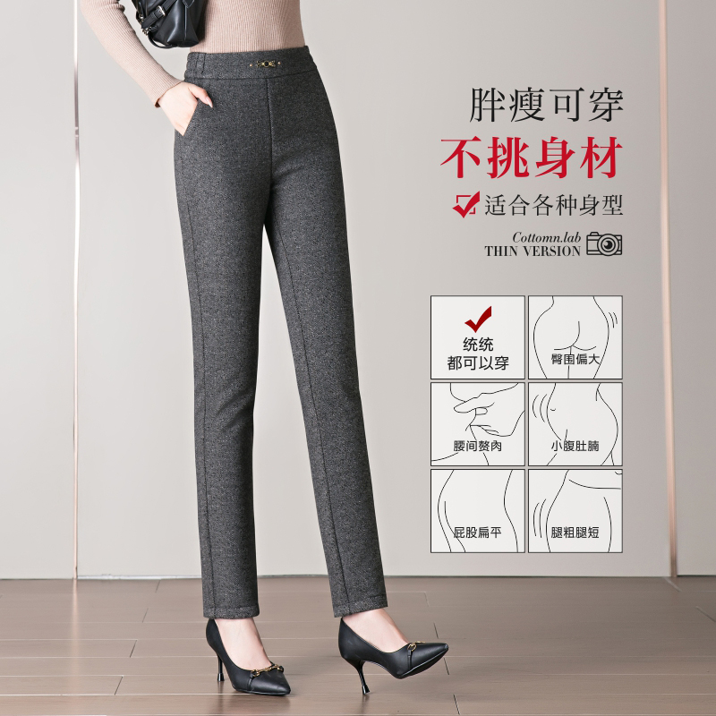 中老年长裤 高腰显瘦宽松大码 女2025新款 秋冬加绒加厚毛呢小直筒裤