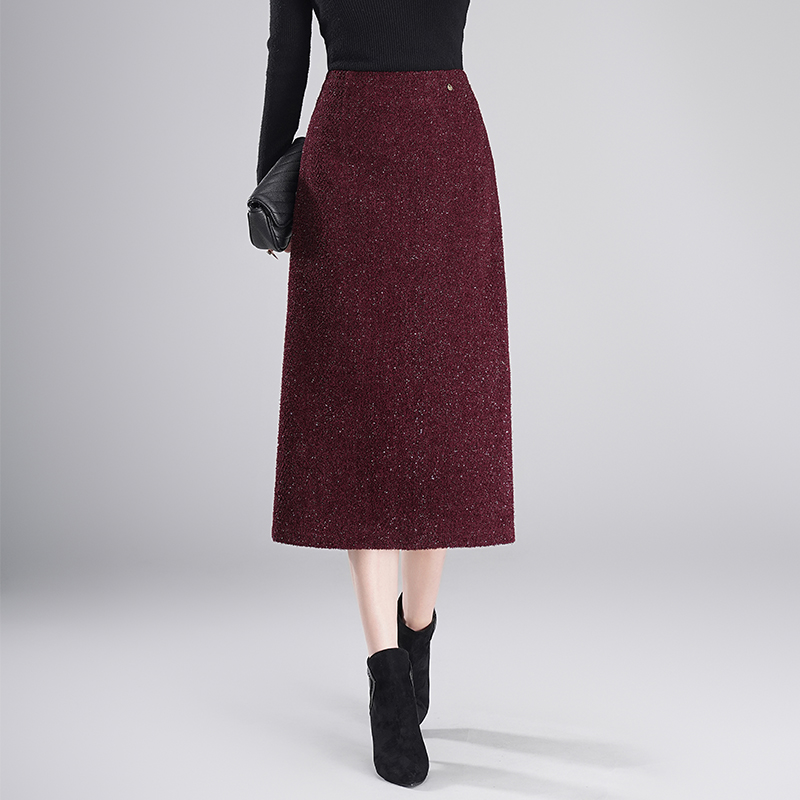 咖色包臀长裙 高级感黑色中长款 毛呢直筒半身裙女春秋冬季 2025新款