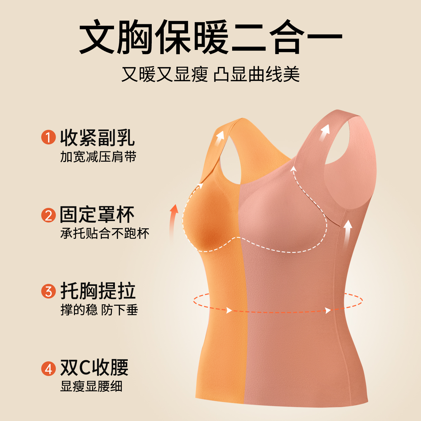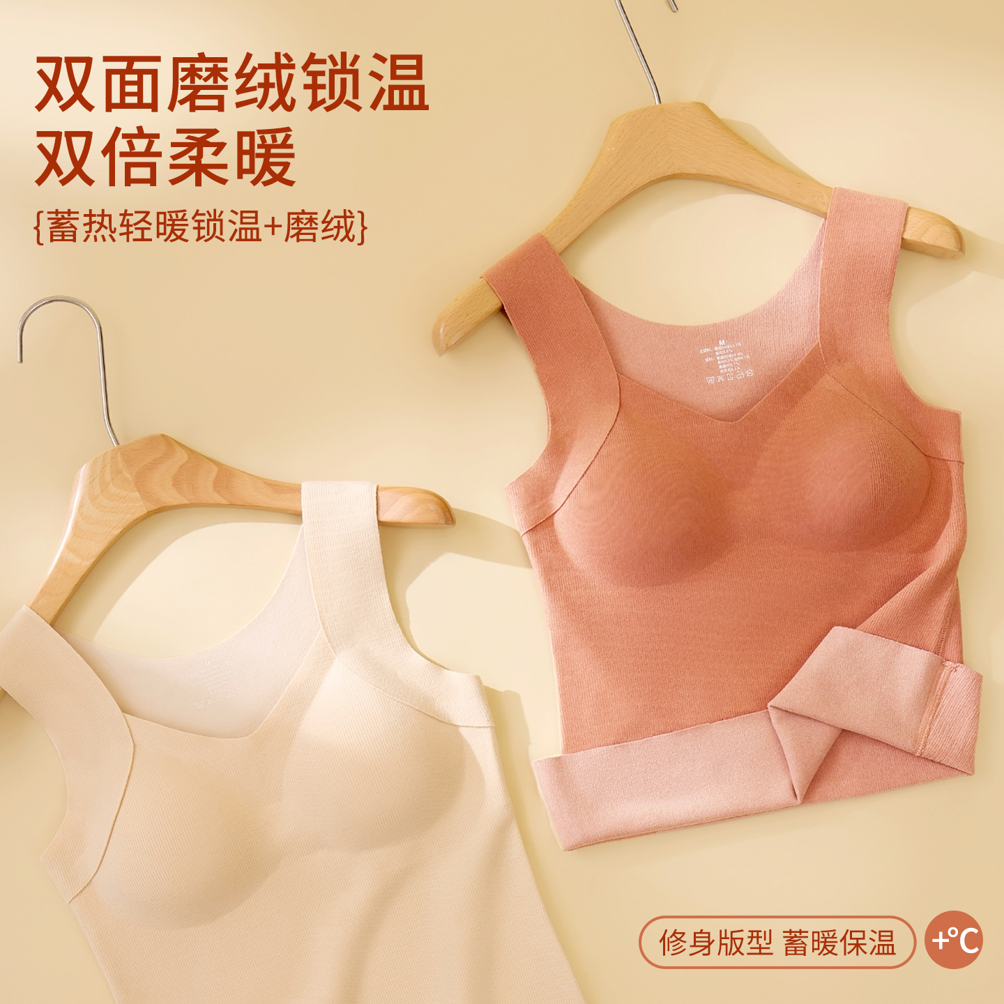 宜而爽德绒保暖背心女带胸垫免穿文胸吊带内衣秋冬季 加绒加厚