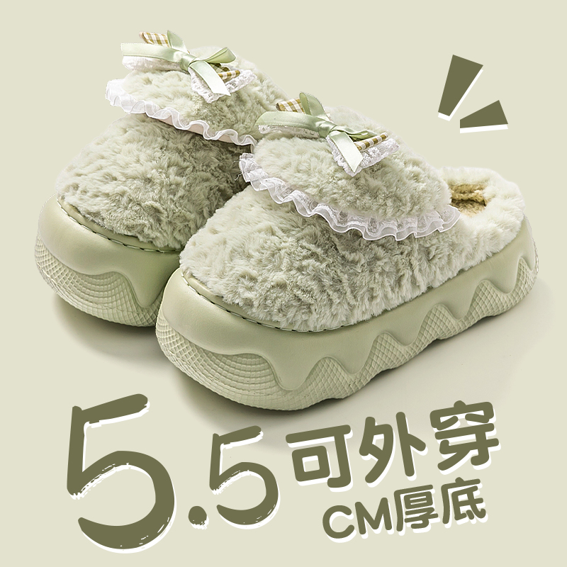 时尚 棉拖鞋 秋冬季 2025新款 外穿厚底毛毛加绒保暖防滑棉拖女士 女款