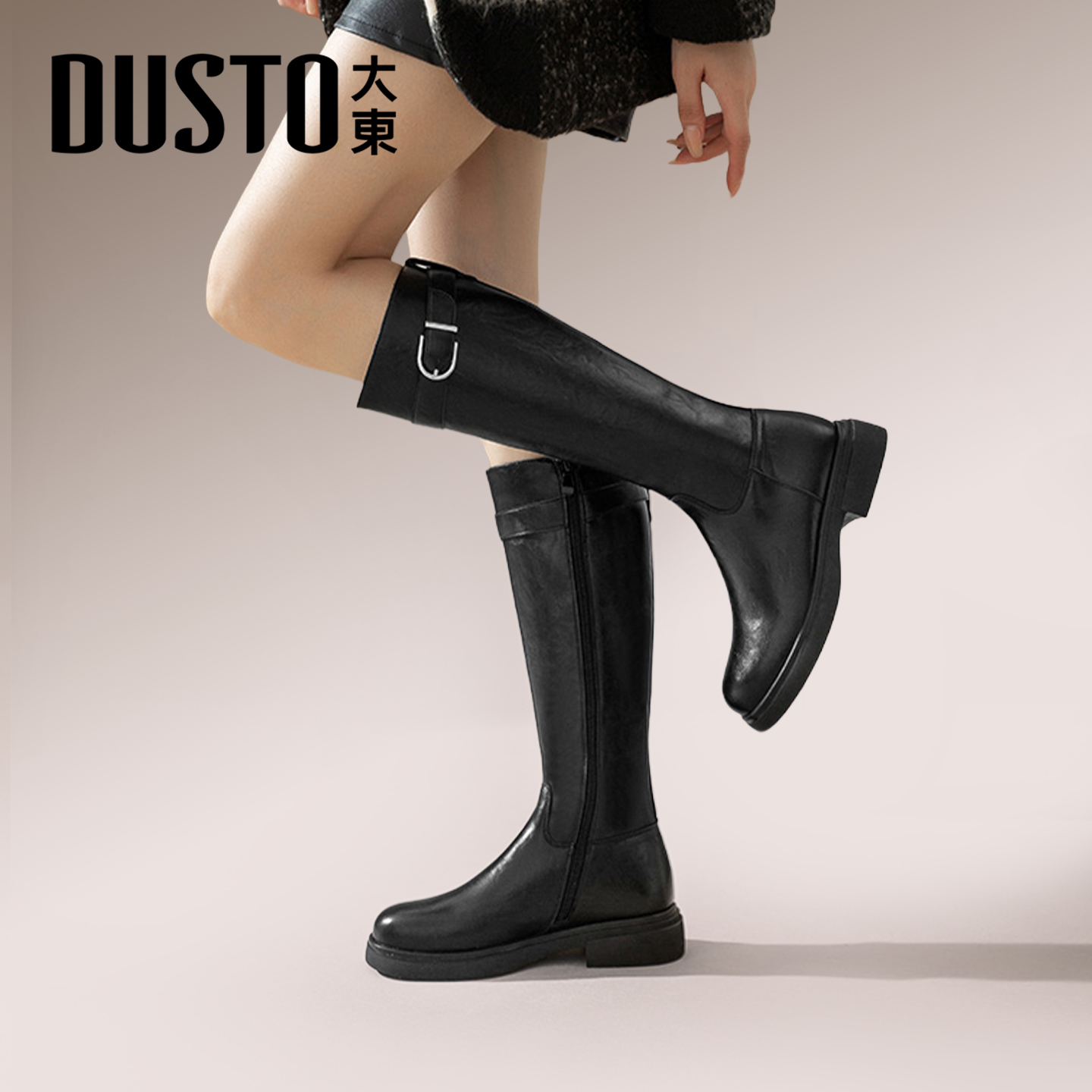 大东官方加绒骑士靴女2025新款 黑色高筒长靴厚底巨好看长筒靴 冬季