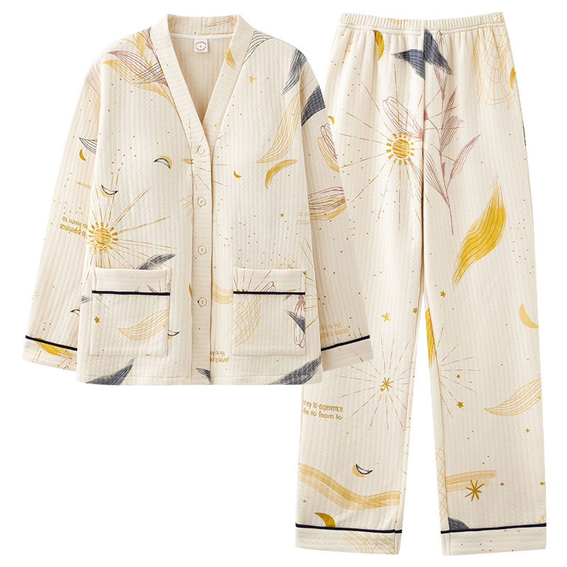 睡衣套装 纯棉春秋季 少女长袖 全棉高级感开衫 家居服 春秋款 芬腾新款