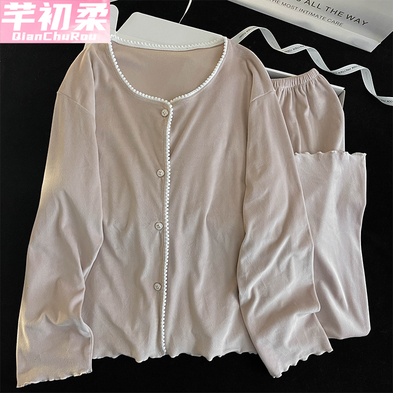 秋2025新款 裤 秋季 长袖 家居服带胸垫高级感 女士套装 莫代尔睡衣女款