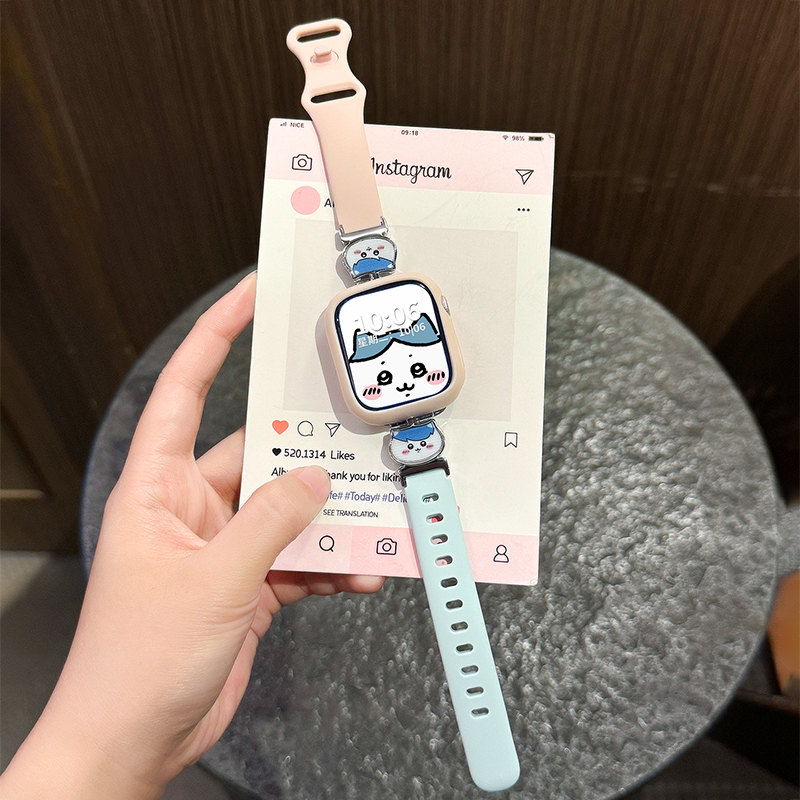 卡通小八 硅胶se专用s876保护壳XL运动智能秋冬季 适用于苹果手表表带iwatch s9新款 腕带 s11高级感s10女款