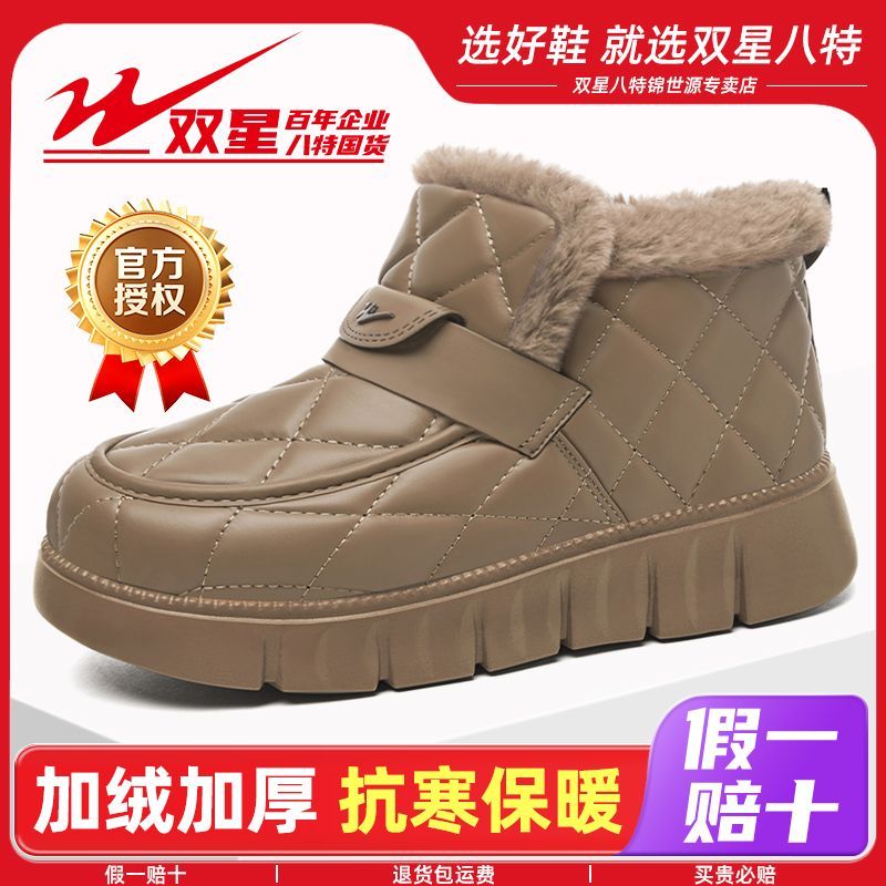 加绒加厚保暖厚底棉靴 一脚蹬雪地靴女老北京棉鞋 双星八特冬季 新款