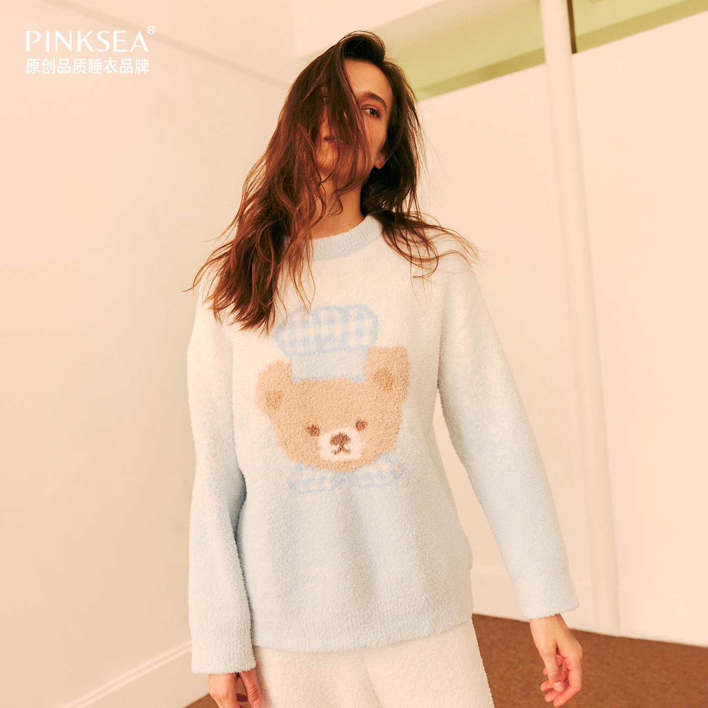 保暖卡通小熊可外穿家居服套装 Pinksea高级感睡衣女款 半边绒冬季