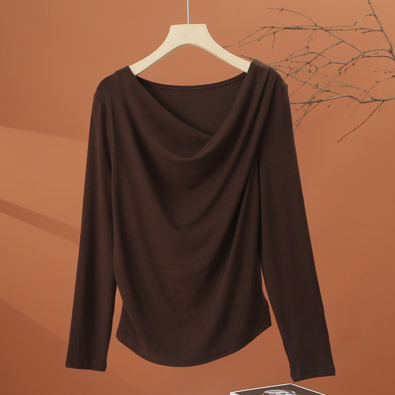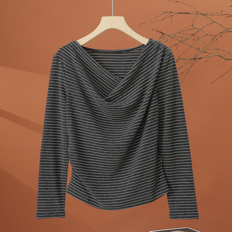 洋气时尚 堆堆领条纹t恤女2025新款 小衫 修身 上衣 秋季 显瘦短款 长袖