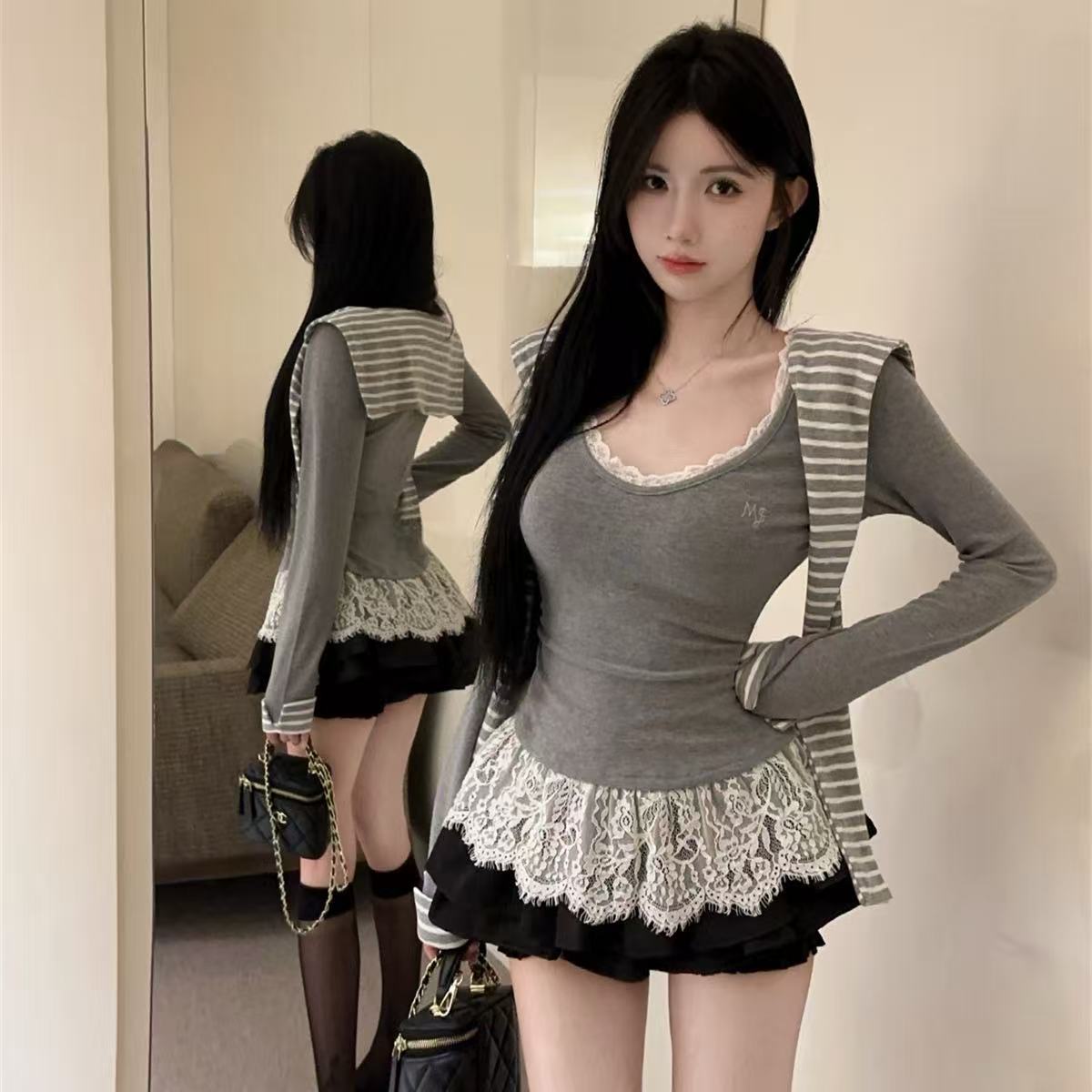 秋季 女 独特漂亮绝美辣妹纯欲风高级感韩系学院风上衣短裙两件套装
