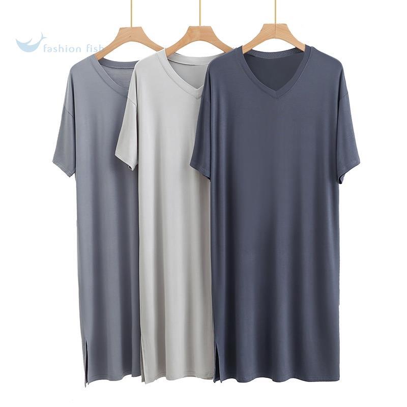 睡衣短袖 浴袍男夏季 长款 一体式 家居服冰丝睡裙 清凉薄睡袍大码 男士