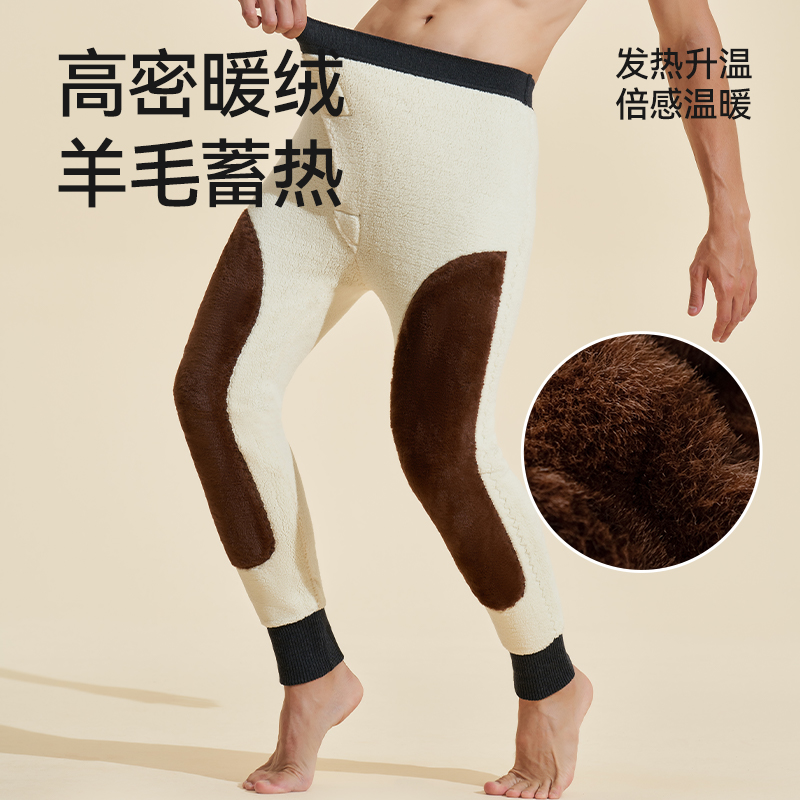 冬季 猫人保暖裤 男士 加绒加厚发热含羊毛双层护膝打底棉毛秋裤 男款