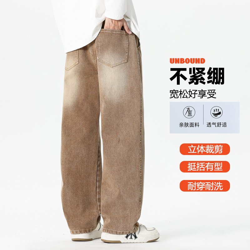 潮牌百搭宽松阔腿直筒长裤 美式 2025秋冬厚款 男装 子 条纹休闲牛仔裤