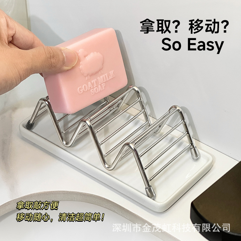 肥皂盒304不锈钢陶瓷皂碟创意w型家用卫生间沥水肥皂托香皂置物架