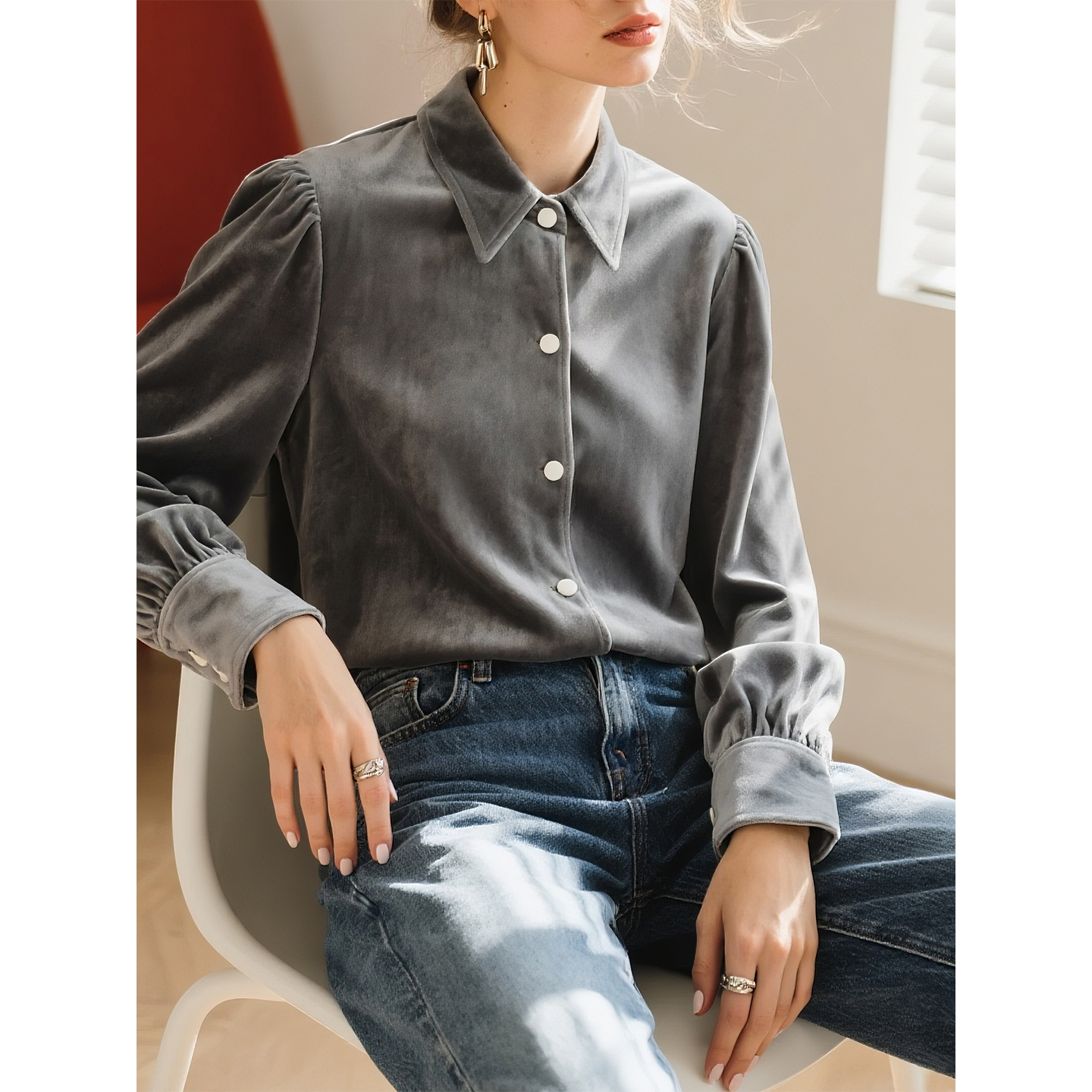 女长袖 大码 气质正装 蓝衬衣短袖 工作服 春秋新款 竹纤维职业白色衬衫