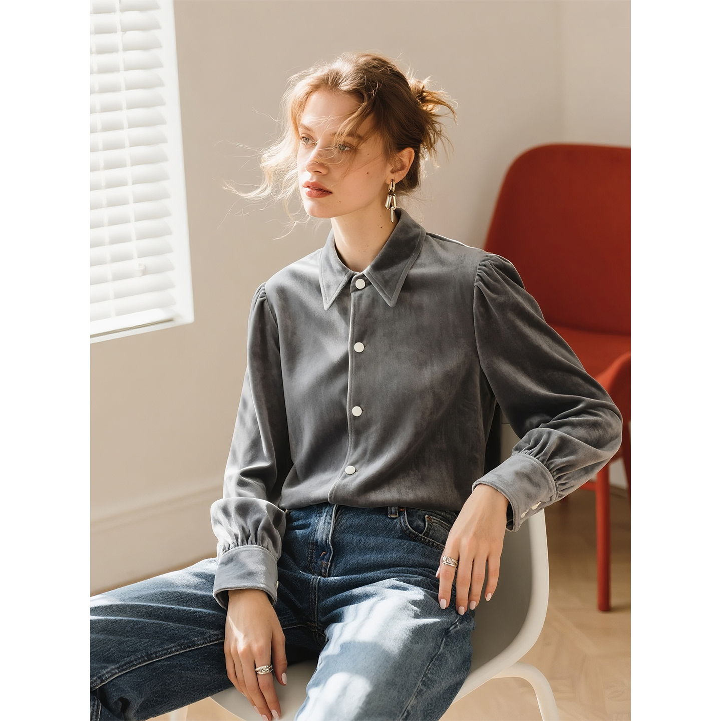牛仔衬衣男18045803 男洗水单口袋宽松长袖 设计师款 佐丹奴牛仔衬衫