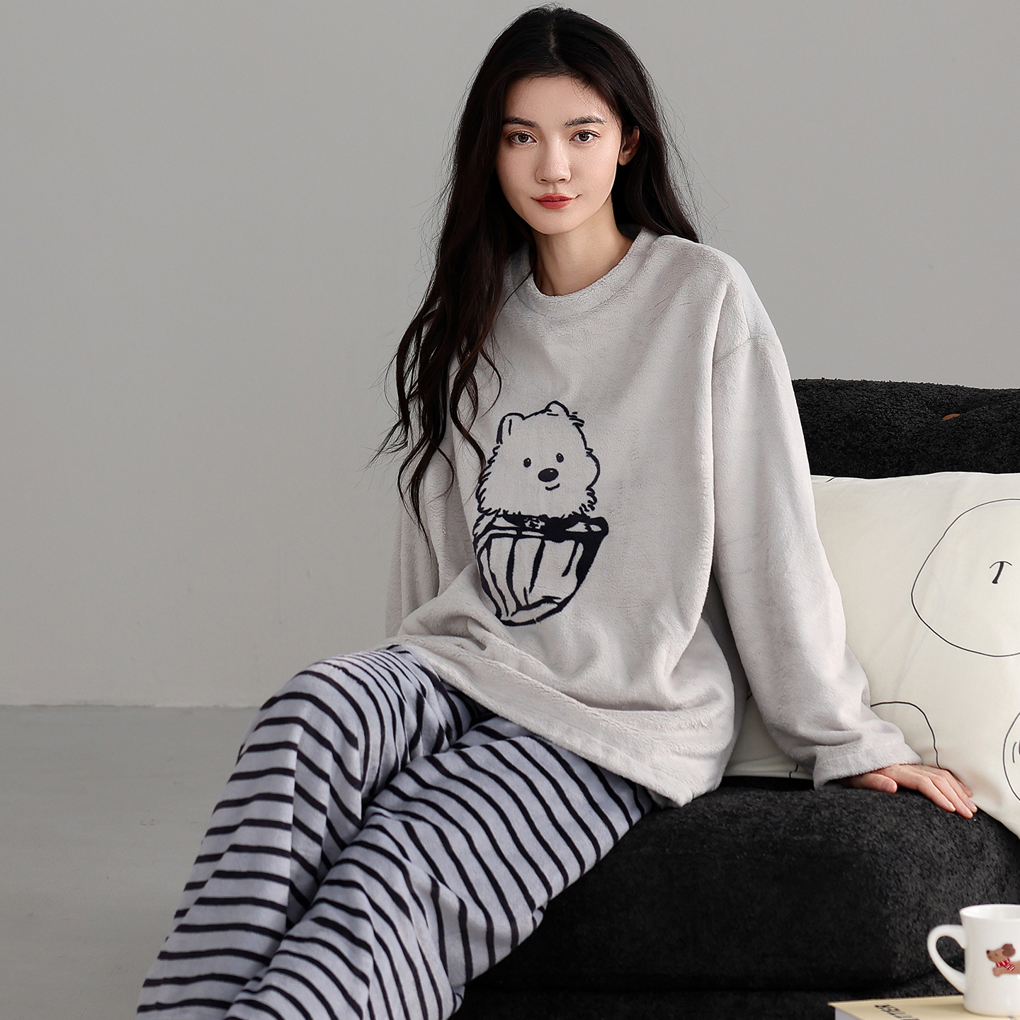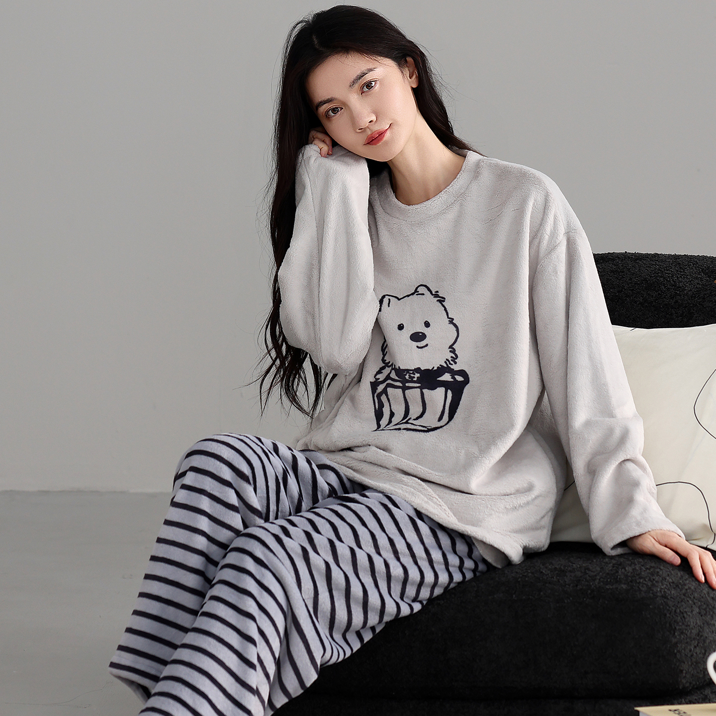 睡衣 柔软保暖卡通长袖 2025冬季 女士法兰绒加厚家居服套装