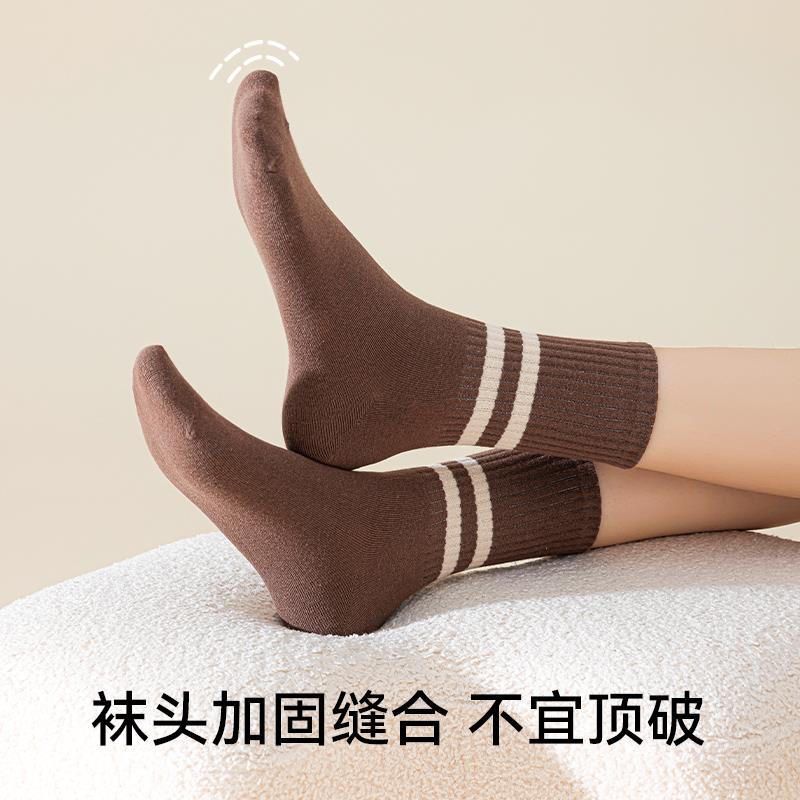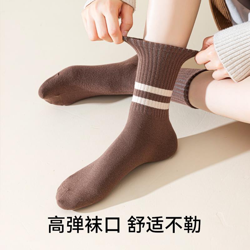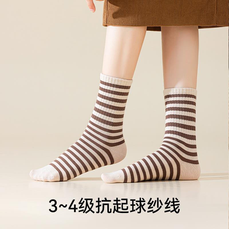 美拉德风条纹撞色中筒袜女春秋保暖抗起球长绒棉堆堆袜搭配勃肯鞋