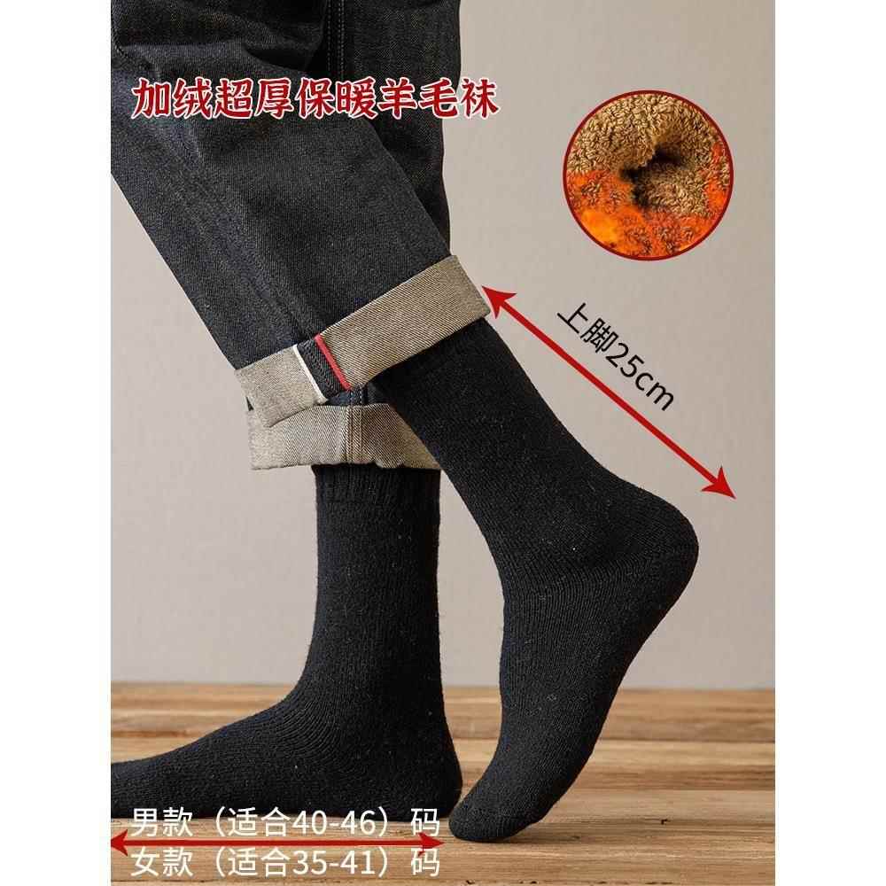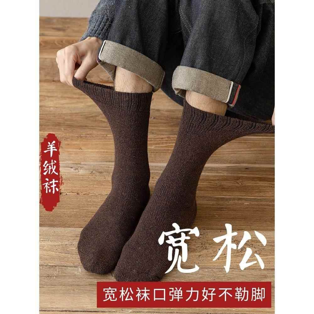 中长羊毛袜加绒加厚男士 毛圈长袜女宽松保暖 超厚老人袜子男秋冬季
