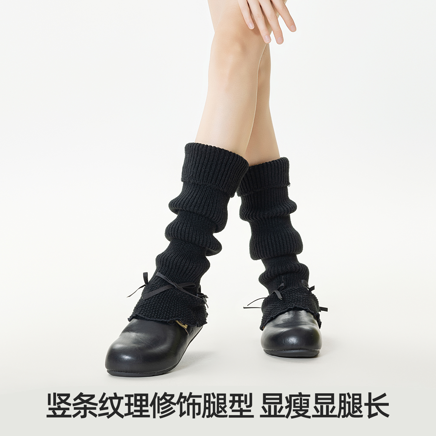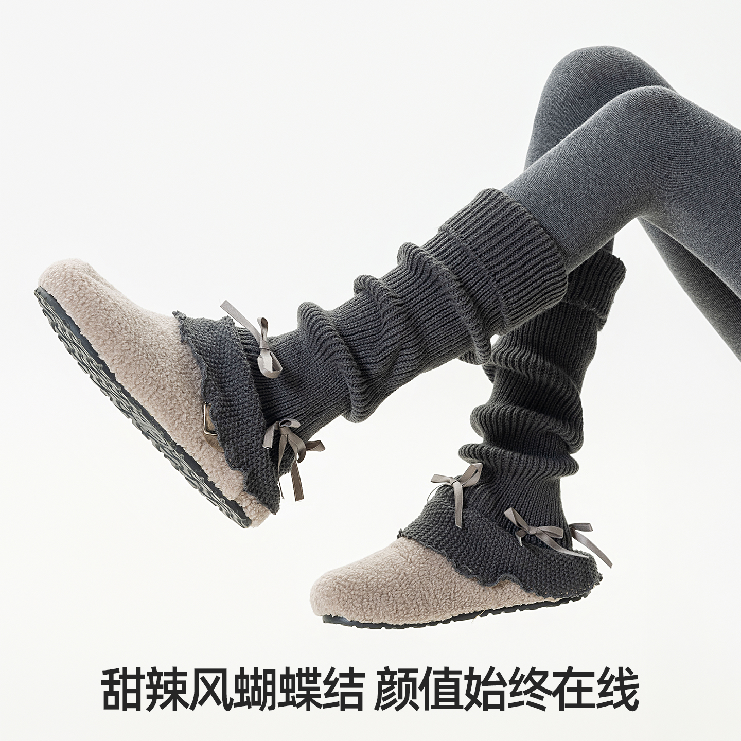 加厚保暖蝴蝶结小腿袜套 秋冬季 袜套女士针织堆堆袜套2025新款 爆款