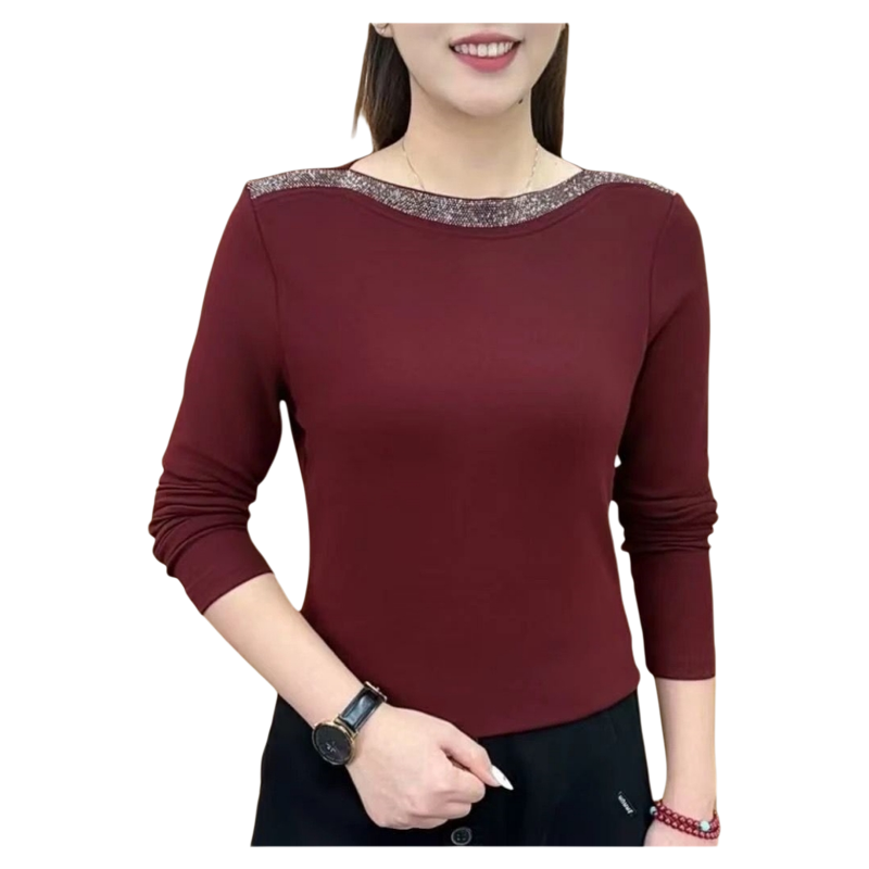新款 大码 女士长袖 T恤气质打底衫 上衣显瘦百搭妈妈 时尚 2026秋冬季