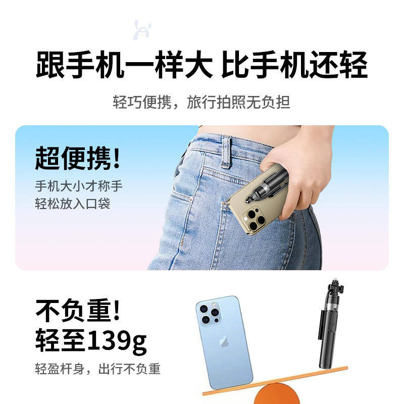 2025新款 自拍杆三脚架旅游便携式 手机支架落地迷你自拍神器360度旋转手持通用vlog拍摄直播演唱会 合金四脚
