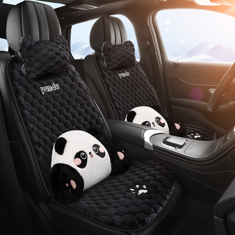 汽车坐垫冬季 毛绒保暖可爱卡通女士高级感半包短毛座垫车内车垫子