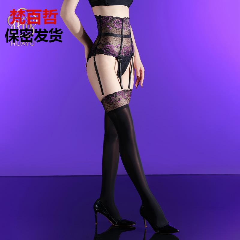 蕾丝腰封束腰鱼骨马甲套装 女性感吊带丝袜一体油亮超薄黑丝袜诱惑
