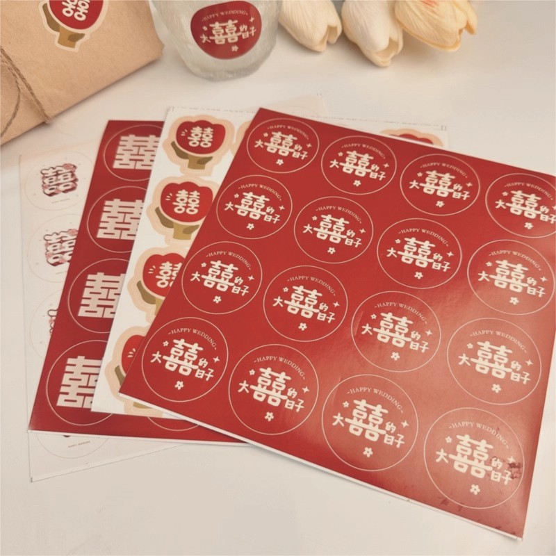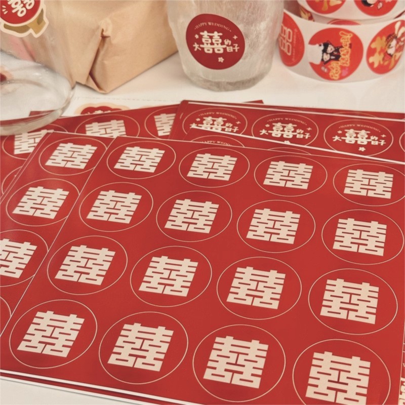 婚礼双喜字贴纸小喜字喜糖贴喜字结婚装 饰布置节日专用请帖封口贴