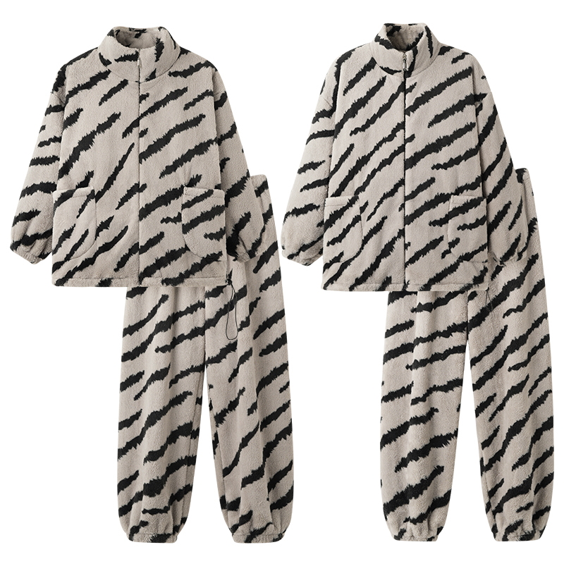 猫人情侣睡衣男女冬季 珊瑚绒加厚保暖拉链斑马纹可外穿家居服套装