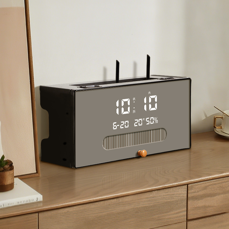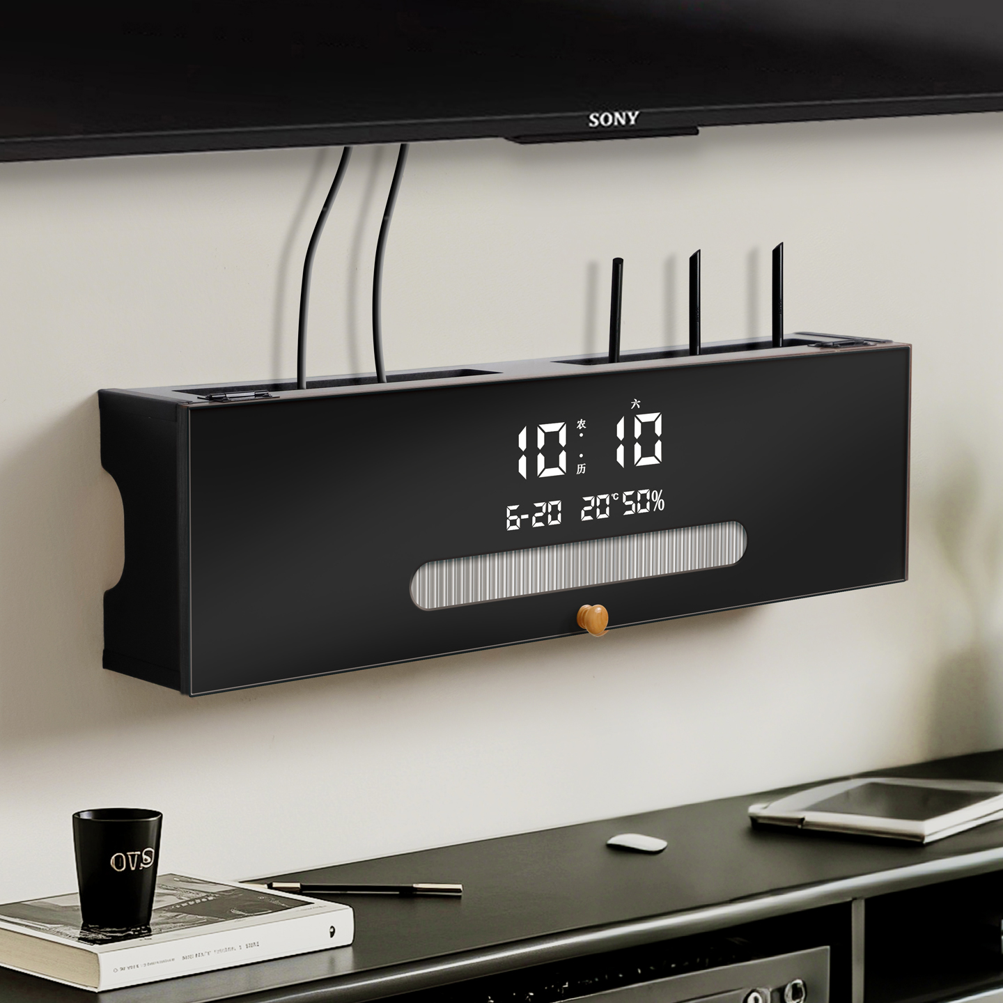 wifi路由器收纳盒万年历电子时钟创意挂墙免打孔光猫插排遮丑神器