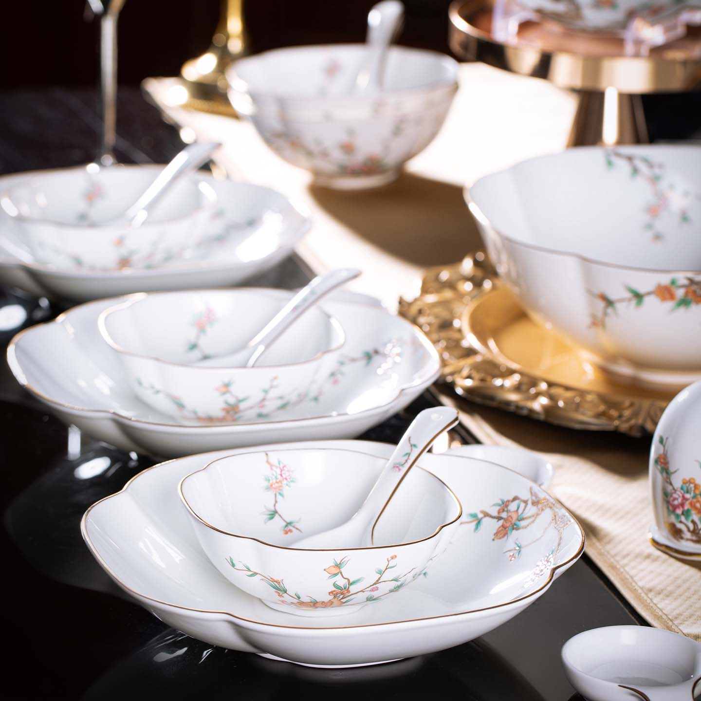 摩登主妇芍药餐具2025新款 家用 釉下彩碗具乔迁新居碗碟筷碗盘套装