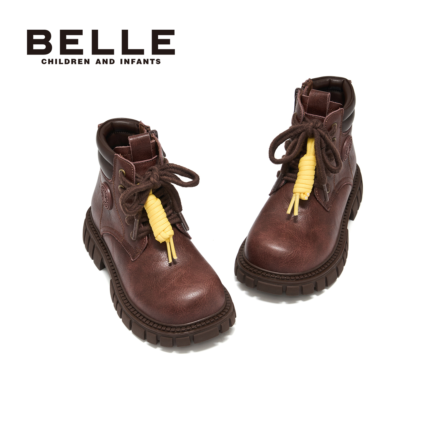 百丽童鞋 小女孩洋气宝宝加绒保暖男童皮靴 儿童马丁靴女童短靴冬季