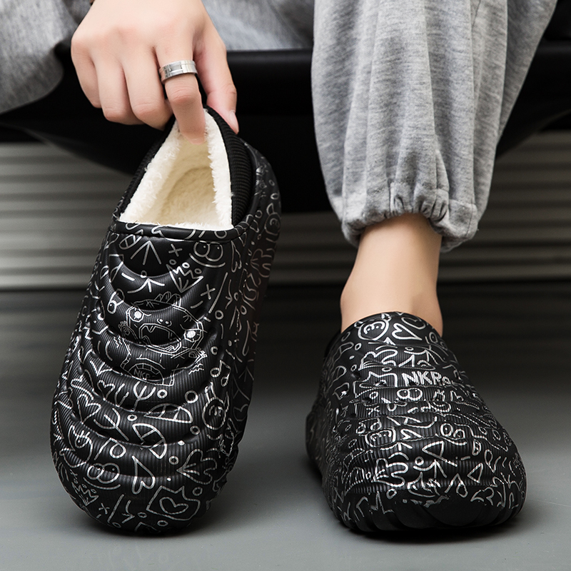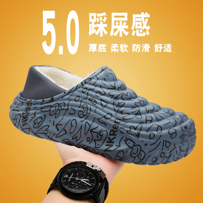 男款 外穿防水防滑厚底增高包头拖鞋 冬季 47棉鞋 加绒保暖大码 棉拖鞋