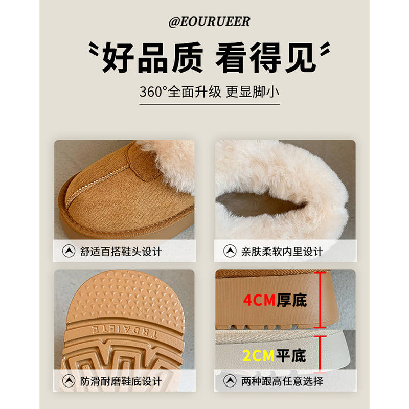 加绒加厚毛毛鞋 秋冬季 2025新款 白色厚底皮毛一体保暖雪地靴子女鞋