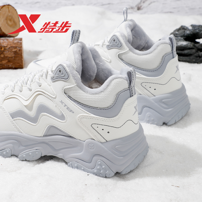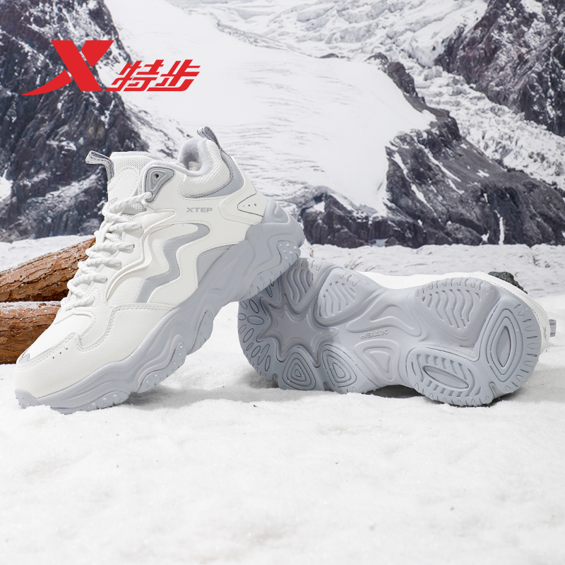 女鞋 特步火山大棉鞋 复古老爹鞋 加绒保暖轻便户外运动休闲鞋 女冬季