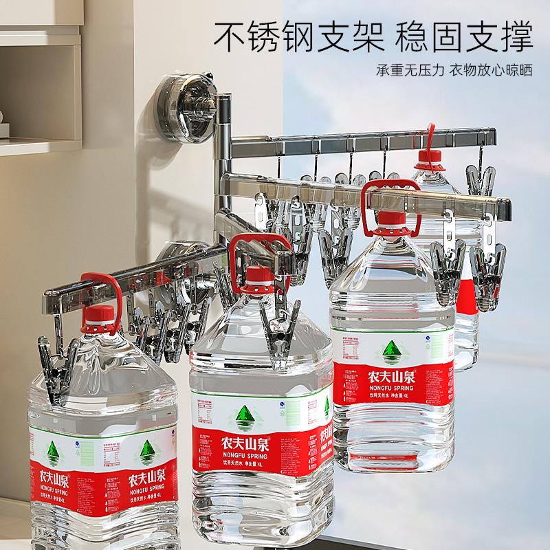 吸盘晾晒架可折叠晾衣架阳台壁挂式 内衣挂架晒袜子神器管道清洁棒