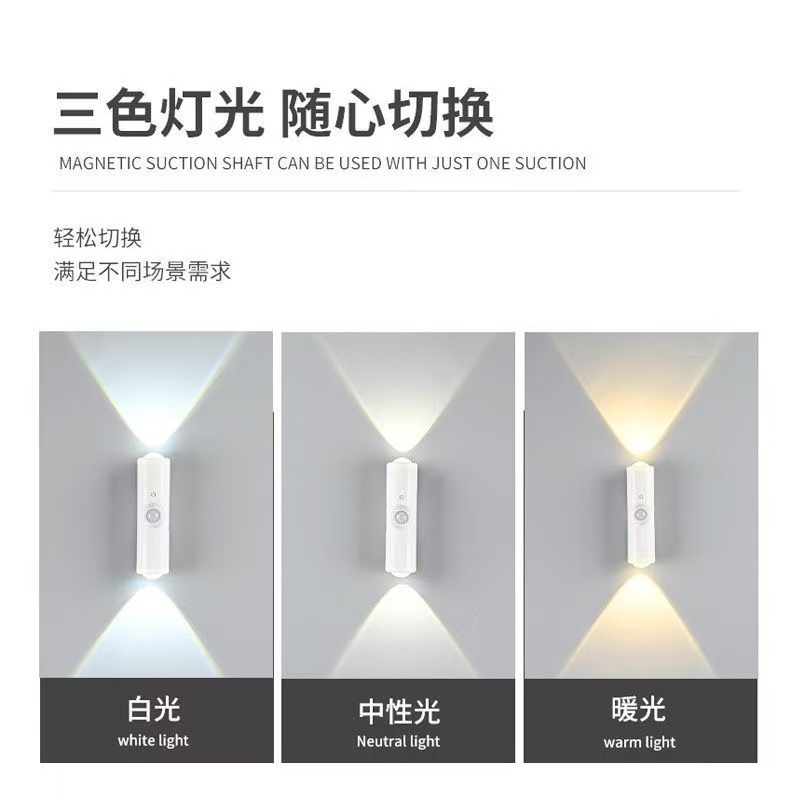 智能人体自动感应小夜灯磁吸充电大容量夜间起夜人来即亮人走即灭