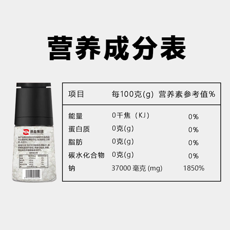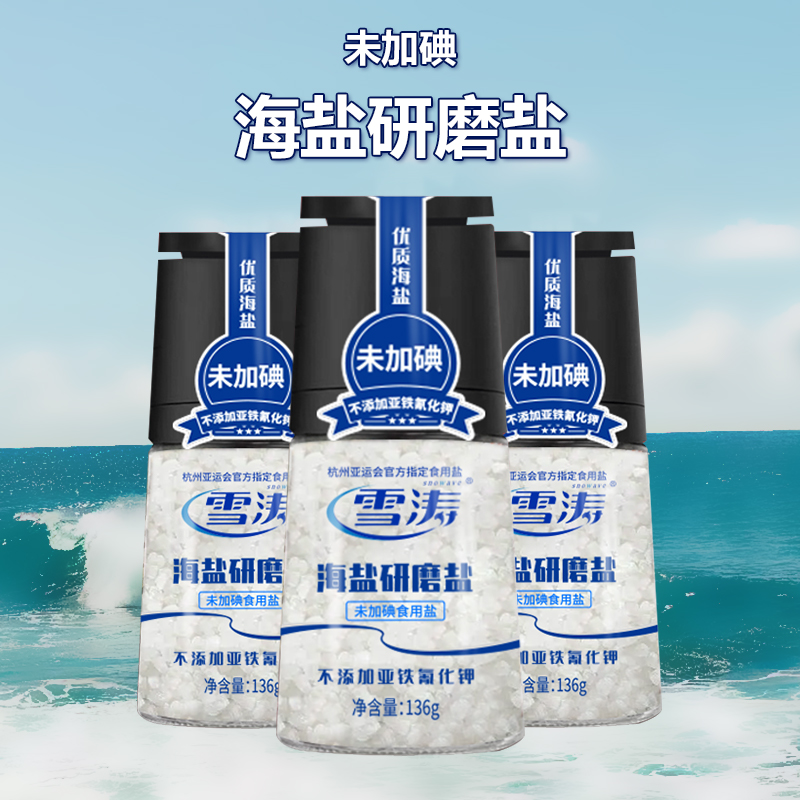 雪涛海盐研磨瓶136g未加碘食用盐无碘烘焙牛排大粒粗盐自带研磨器