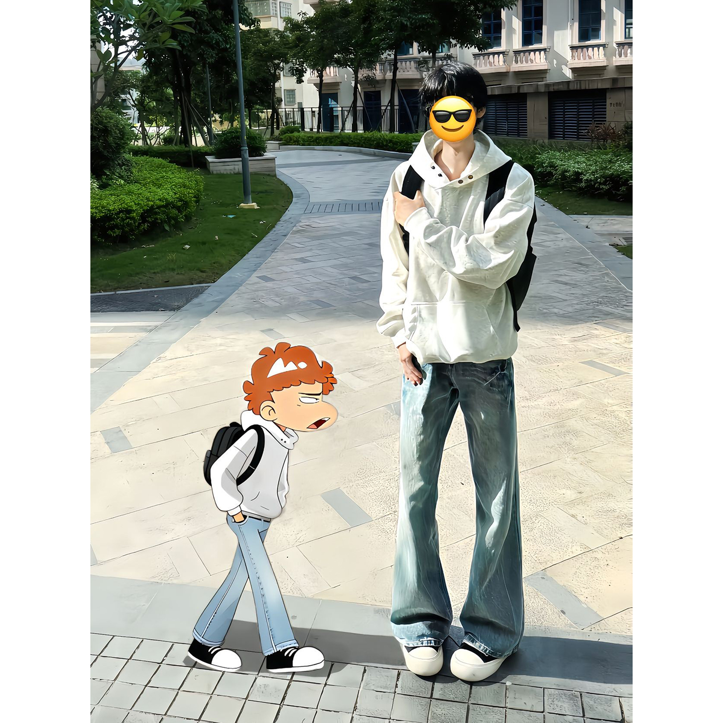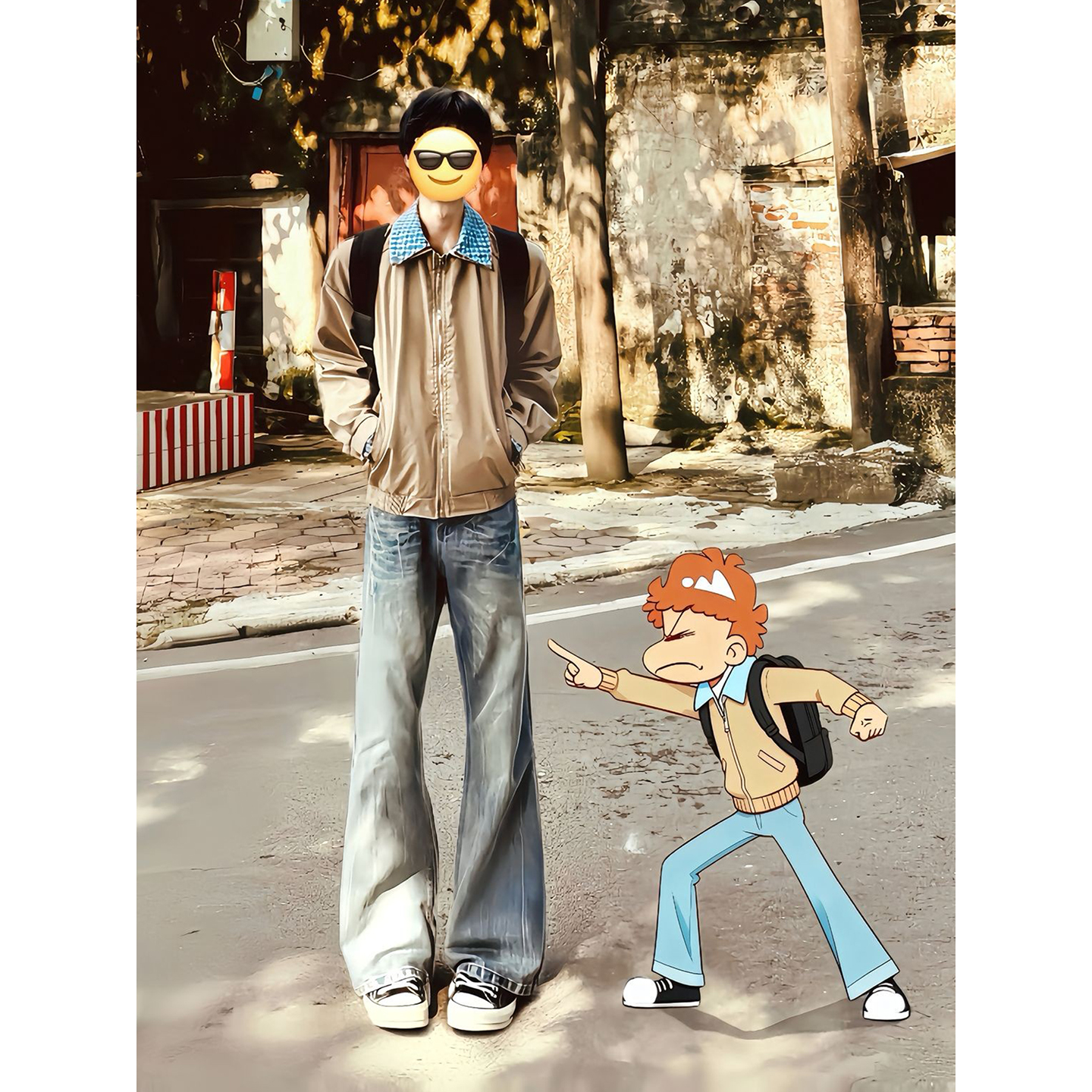 森马牛仔裤 裤 男宽松直筒拖地裤 夏季 子显高 垂感复古长裤 森柔牛仔