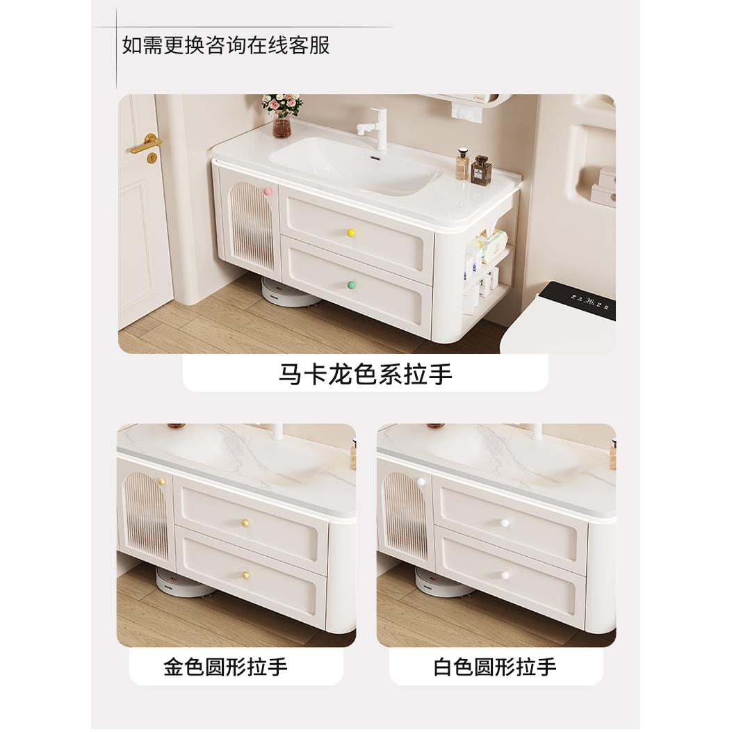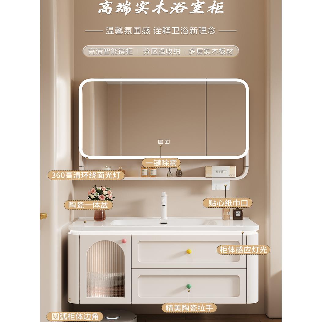 新款 多巴胺风实木侧边柜智能浴室柜卫生间陶瓷一体盆柜组合