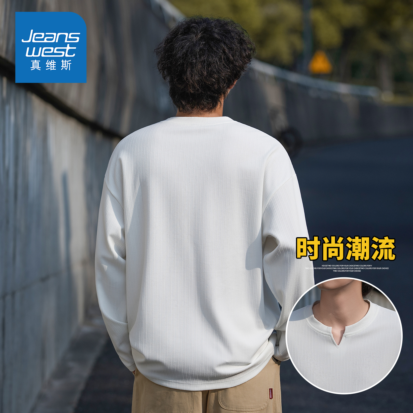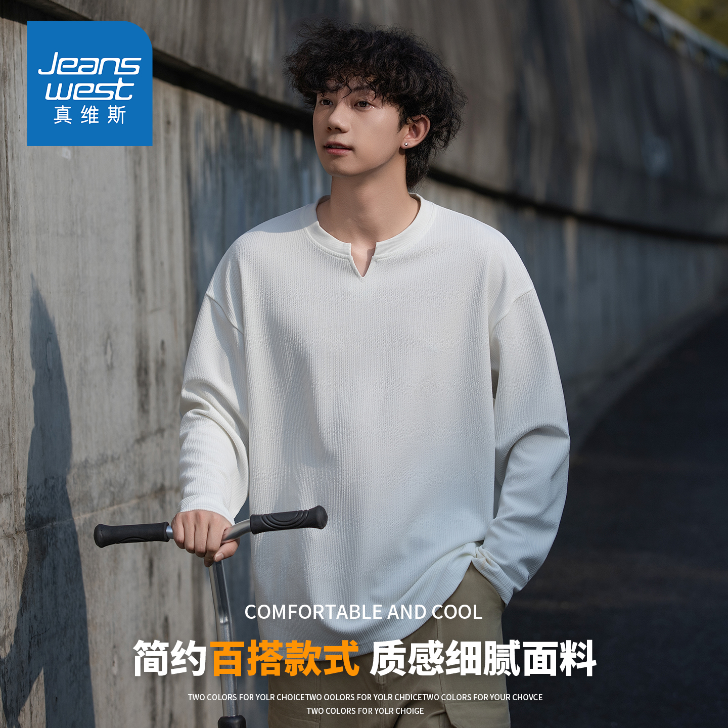 打底衫 KZH真维斯纯色长袖 宽松时尚 新款 纯棉潮流休闲上衣 T恤男秋季
