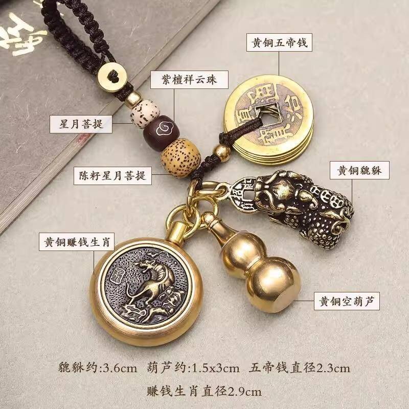朱砂黄铜空心葫芦钥匙扣随身小药瓶挂件汽车钥匙链圈吊坠男女礼物