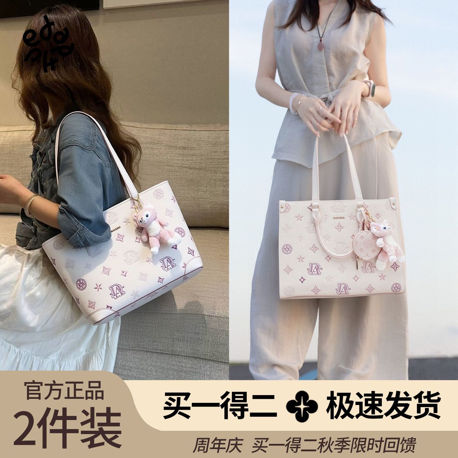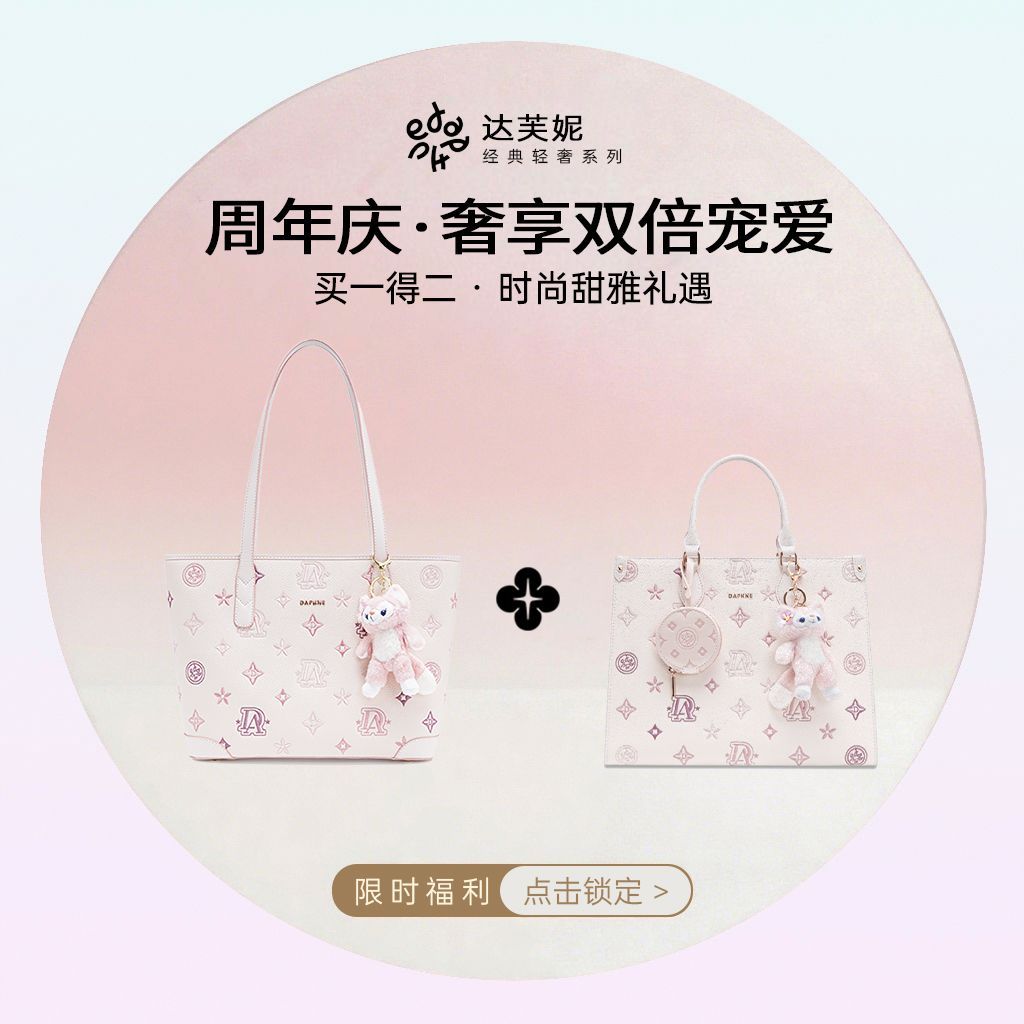 达芙妮2025新款 Daphne 大号百搭通勤印花单肩托特包 闺蜜系列