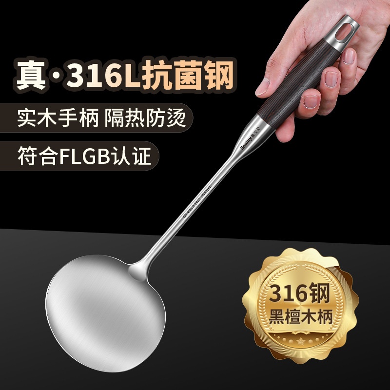 德国蘑菇铲316不锈钢锅铲食品级家用炒菜铲子木柄把加厚铁铲炒勺